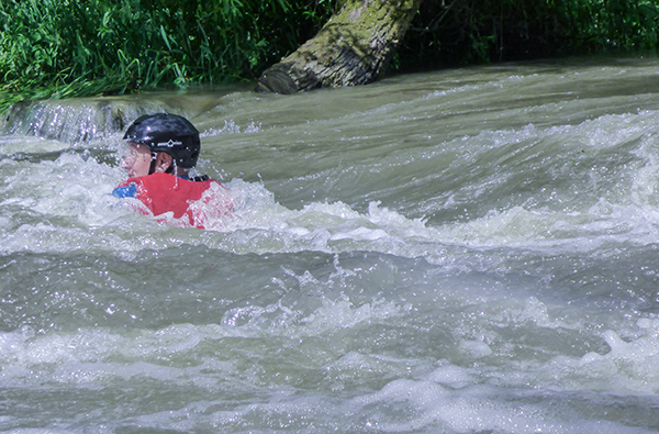 Schwimmen in naturbelassenem Fluss und kleineren Stromschnellen, Kehrwasserschwimmen
