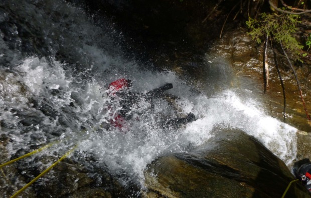Beim Canyoning in Haiming steht Dir eine dreistündige Schnuppertour in der Gruppe durch die herrliche Bergwelt des Südtirols bevor. Mit einer Abseilhöhe und Sprüngen von bis zu sechs Metern und Wasserrutschen, die sogar 15 Meter lang sein können stehen Dir auf jeden Fall abenteuerliche Momente und einige Mutproben bevor. Dennoch ist das Level dem noch ungeübten Canyoning-Interessierten angepasst, sodass Du diese herausfordernde Sportart Stück für Stück kennenlernen kannst. Von einem staatlich geprüften Guide wirst Du zusammen mit den anderen Teilnehmern auf der Basis begrüßt und mit der hochwertigen Leihausrüstung ausgestattet. In Kleinbussen geht es dann zum Einstieg am Canyon. Doch bevor es richtig losgeht, erfolgt zunächst eine theoretische Einführung sowie ein Gespräch zu Sicherheit und dem richtigen Verhalten im Berg. Perfekt vorbereitet geht es dann los – und zwar über eine 20 Meter lange Flying Fox Rutsche quer über die Schlucht. Ein perfekter Start in Dein Bergabenteuer! Von dort aus geht es weiter über mehrere kleine Rutschen, Schluchten, Hänge und verwinkelte Wasserbecken hin zum absoluten Highlight der Tour: eine 15 Meter lange, natürliche, in den Fels eingeschliffene Wasserrutsche. Der Tourguide erklärt noch einmal ausführlich die richtige Rutschtechnik – und dann geht es hinab! Für alle vorherigen Anstrengungen beim Canyoning in Haiming wirst Du mit diesem ultimativen Kick voll und ganz entlohnt! Nach einer kurzen Pause geht es dann im Wasser schwimmend weiter zur letzten großen Herausforderung: Bei einer Gefällstufe von sechs Metern kannst Du selbst entscheiden, ob Du springen, rutschen oder abgeseilt werden möchtest. Danach verlasst Ihr die Schlucht über ein Drahtseil und geht zurück zur Basisstation, wo ein Schnaps, eine heiße Dusche und Entspannung auf Dich wartet.