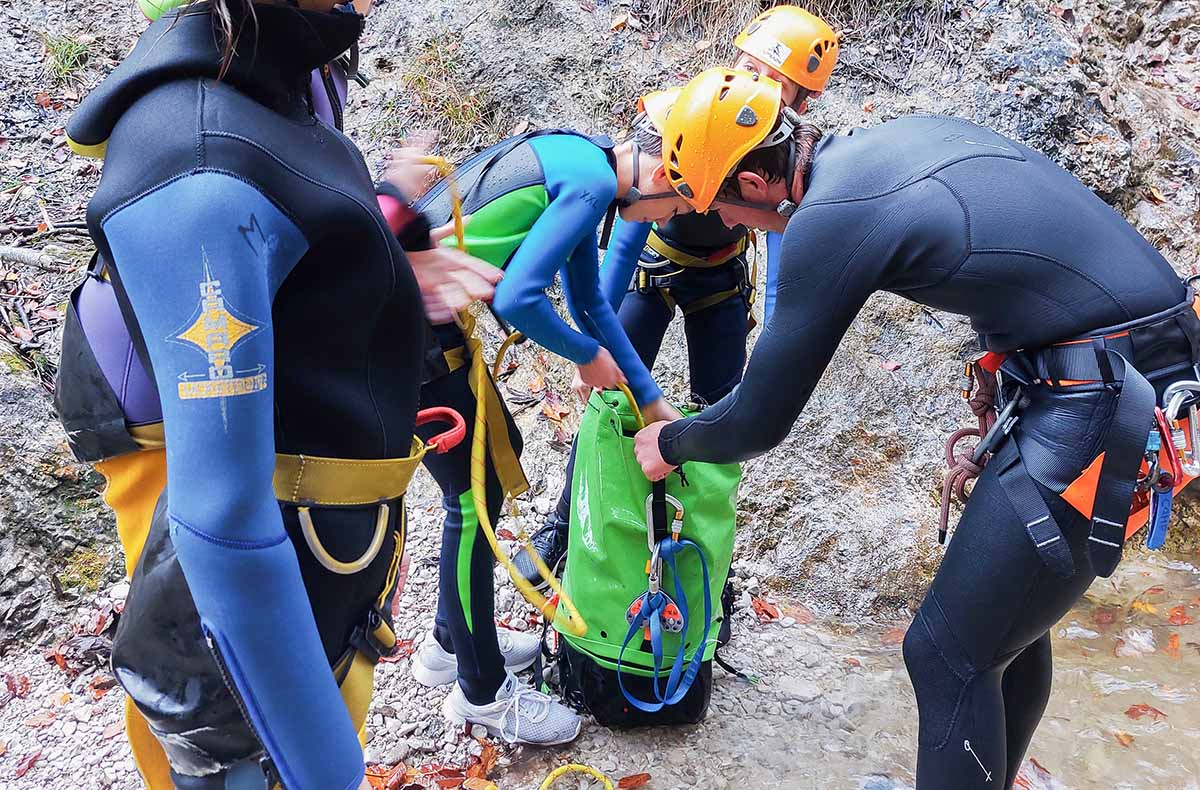 Wird gestellt: Neoprenanzug, kompletter Canyoning-Gurt, Helm