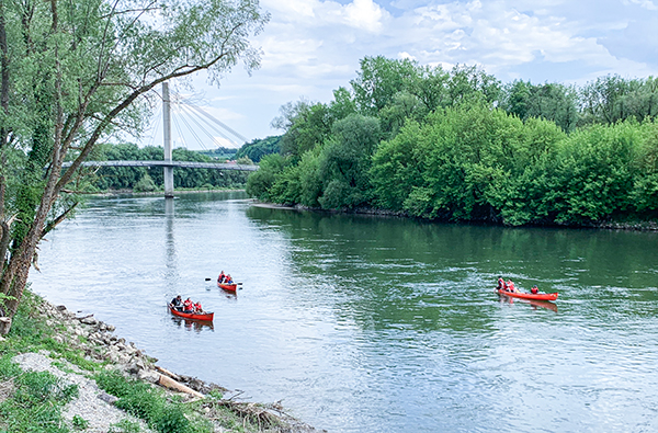 Natürlich kannst Du auch zwischendurch entspannen und Dich auf dem Strom treiben lassen. Du hörst wie das Wasser fließt und spürst den Strom, der Dich weiter den Fluss hinunterbringt. Hier und da zwitschert eine Uferschwalbe und mit etwas Glück siehst Du auch einen Eisvogel. Du paddelst auf der Donau und freust Dich schon auf die Highlights wie die Kanutreppe und die Schleuse.