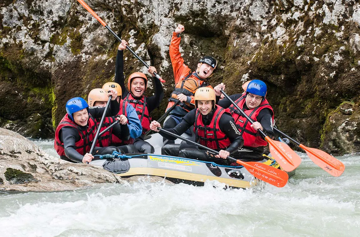 Rafting zählt schon lange als der Klassiker unter allen Wildwassertouren. Genieße den nassen Spaß im Rafting-Boot und freue Dich auf wilde Manöver. Euer geprüfter und erfahrener Guide wird Euch kurz in die Geheimnisse des Raftings einführen. Nach ein paar Schwimmübungen in der Spezialausrüstung geht es dann schon ans Eingemachte. Mit Deinem Rafting-Guide im Boot kannst Du eins werden mit der Natur und die Kraft und Intensität des Wassers spüren bzw. dagegen ankämpfen.