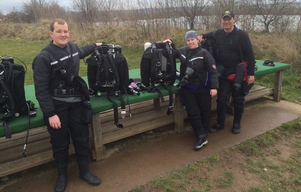 Ca. 4 Stunden (inklusive Anfahrt von der Tauchschule zum See)