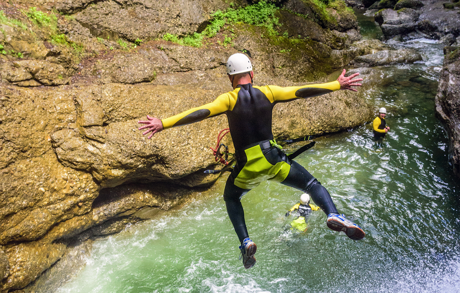 Ihr habt keine Angst vorm nass werden und Lust auf ein ganz besonderes Erlebnis mit hohem Fun-Faktor? Dann wagt den Sprung ins kühle Nass und entscheidet Euch fürs Canyoning für Anfänger in Schneizlreuth!