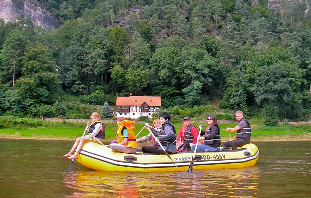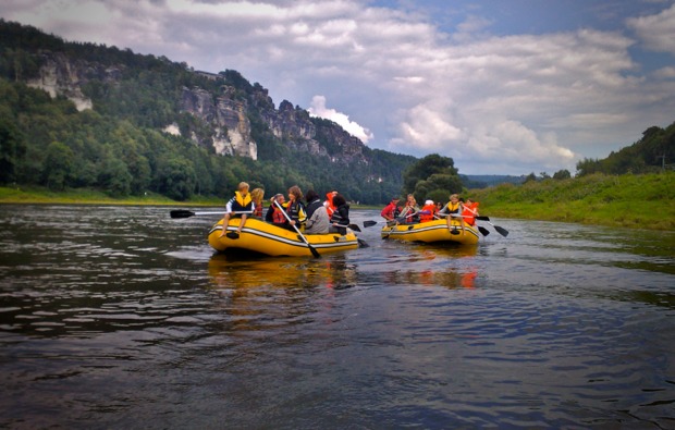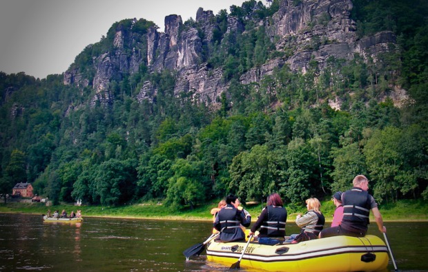 Angekommen in Bad Schandau warten bereits Deine Schlauchboote samt Ausrüstung auf Dich. Nach einer ausführlichen Einweisung, bekommt jeder Teilnehmer ein Paddel und eine Schwimmweste ausgehändigt. Bei Deiner Tour begleitet Dich Dein Guide in einem Motorboot und erklärt Dir nebenbei die Sehenswürdigkeiten.