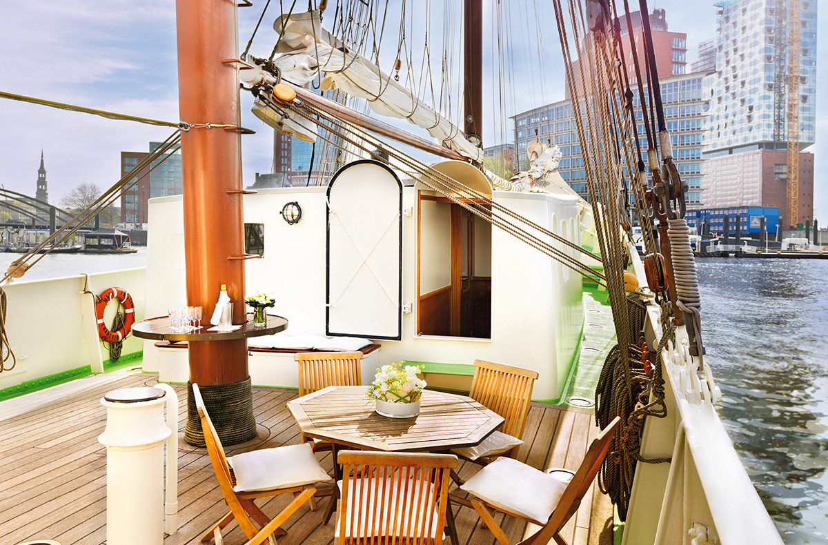 Der Himmel wolkenlos blau, strahlender Sonnenschein. Das perfekte Wetter für einen außergewöhnlichen Segeltörn. An Bord des beeindruckenden Windjammers Mare Frisum heißt Euch die Crew mit einem Begrüßungssekt herzlich willkommen. Mit einer Länge von 52 Metern und einer Breite von 6,7 Metern ist der Dreimaster ein wahrer Hingucker. Mit gehissten Segeln legt Ihr am Hamburger Hafen ab. Den Trubel der Stadt lasst Ihr beiden einfach an Land. Entdeckt die Hansestadt bei Seeluft aus einer ganz neuen Perspektive.