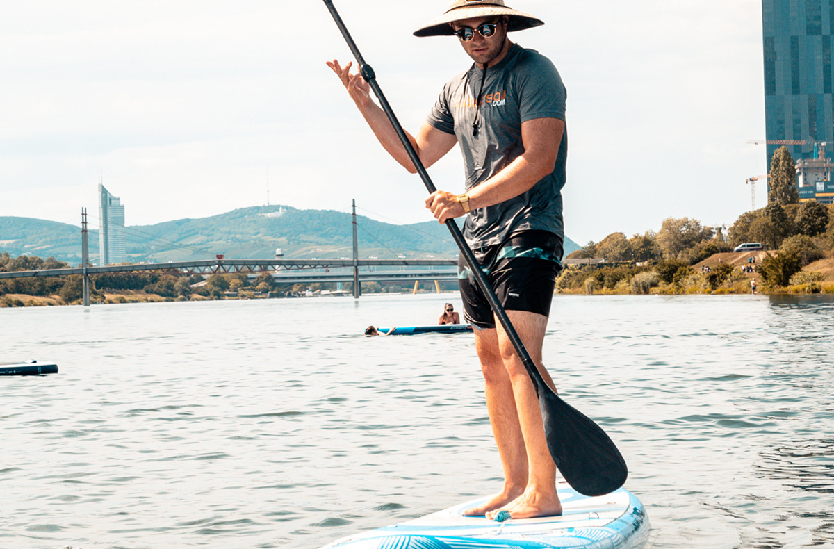 Unter Anleitung der SUP-Instruktoren lernst Du die Grundlagen des Stand Up Paddling Sports kennen. Dazu zählen das richtige Paddel und Kurventechnik und wie Du richtig die Balance hältst. Du genießt die entspannte Atmosphäre auf dem Wasser und gleitest sanft über die glatte Oberfläche der Donau. Du hörst die Vögel zwitschern und das Plätschern der leichten Wellen und genießt die Sonne im Gesicht. Einfach herrlich!
