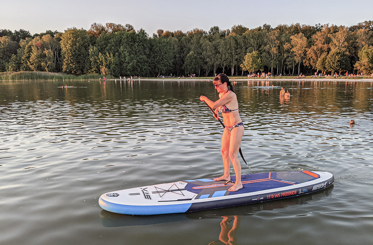 Beim Paddeln auf dem SUP beanspruchst Du jede Körperregion. Gönn Dir eine Pause und erkunde die Gegend auf dem Rangsdorfer See. Da das Paddleboard so groß ist, kann man sich auch hervorragend darauflegen. Lass Dich treiben und genieß dabei die Sonne. SUP fahren kann jeder lernen und entspannt vom Alltagsstress.