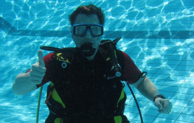 In diesem Kurs erfährst Du zunächst alles über Terminologie, Planung und Sicherheitsvorkehrungen beim Tauchen. Dieses Wissen kannst Du dann schon bald in die Praxis umsetzen – im Pool in Coburg absolvierst Du Deine ersten Tauchgänge und erlernst die nötigen Grundfertigkeiten. Diese vertiefst Du dann anschließend in Freiwassertauchgängen. Dabei gehen die Tauchlehrer ganz individuell auf Dich ein: jede Übung wird so oft wiederholt, bis sie beherrscht wird. Erst dann erfolgt der jeweils nächste Lernschritt.