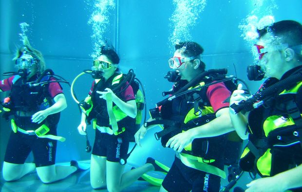 Nach einer Begrüßung und dem Kennenlernen der anderen Taucher bekommst du eine theoretische und praktische Einführung von einem erfahrenen Instruktor. Vom Profi lernst du die Grundregeln des Tauchens, die richtige Atemtechnik und wie du mit den anderen Tauchern unter Wasser kommunizieren kannst. An den zwei Tagen, die du im Rothsee verbringst, warten auf dich 5 Tauchgänge mit verschiedenen Themen. Das Tieftauchen und die Unterwassernavigation stehen dabei an erster Stelle und die 3 weiteren Tauchgänge stehen dir frei zur Wahl. Dabei wirst du immer von deinem Tauchlehrer begleitet, der dir viele Tipps zum Tauchen gibt.