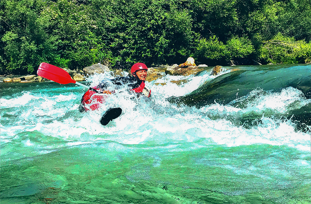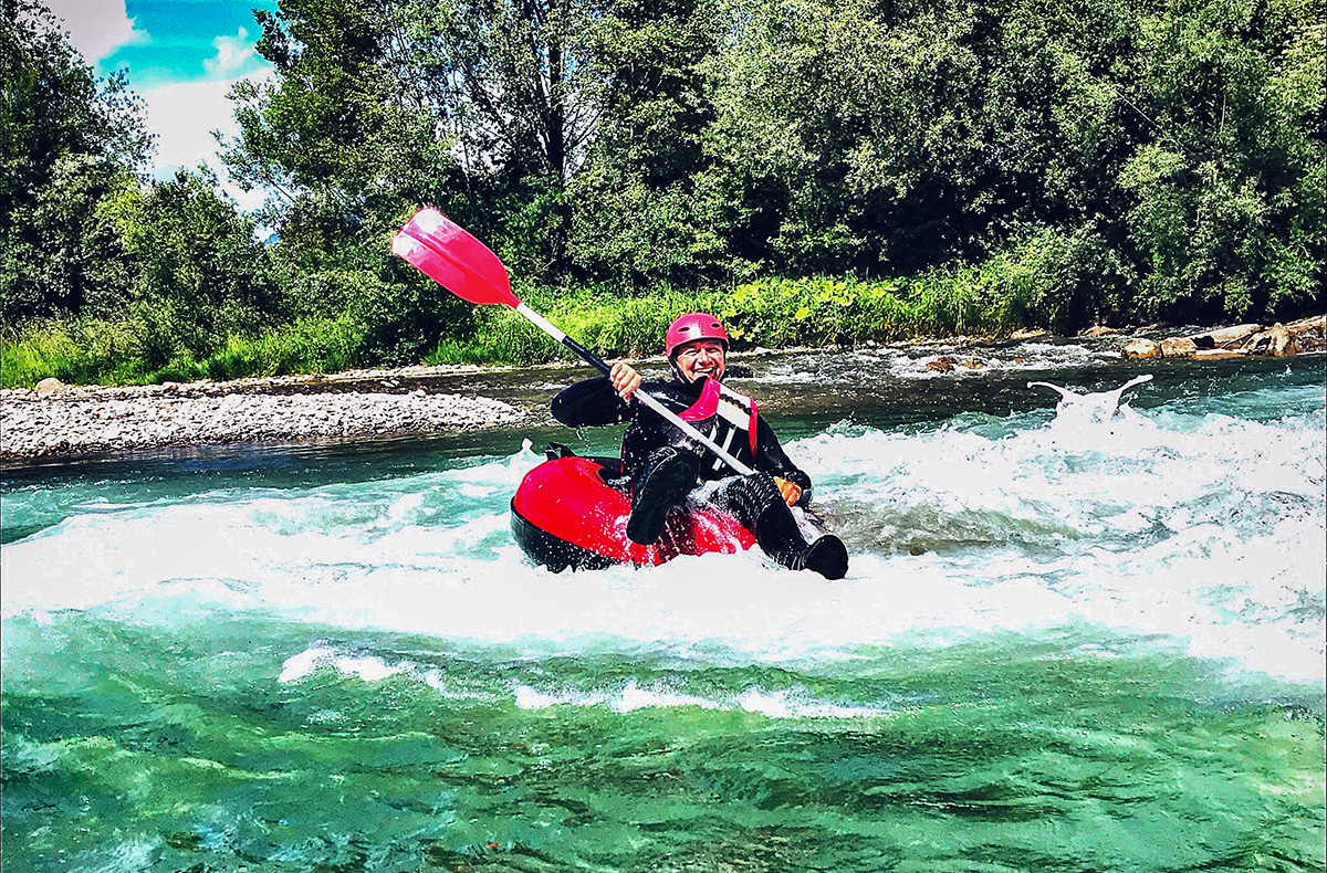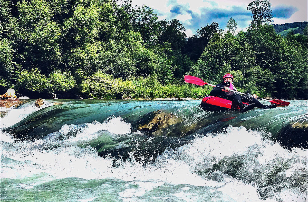 Auf einem Reifen den Wildbach hinunter