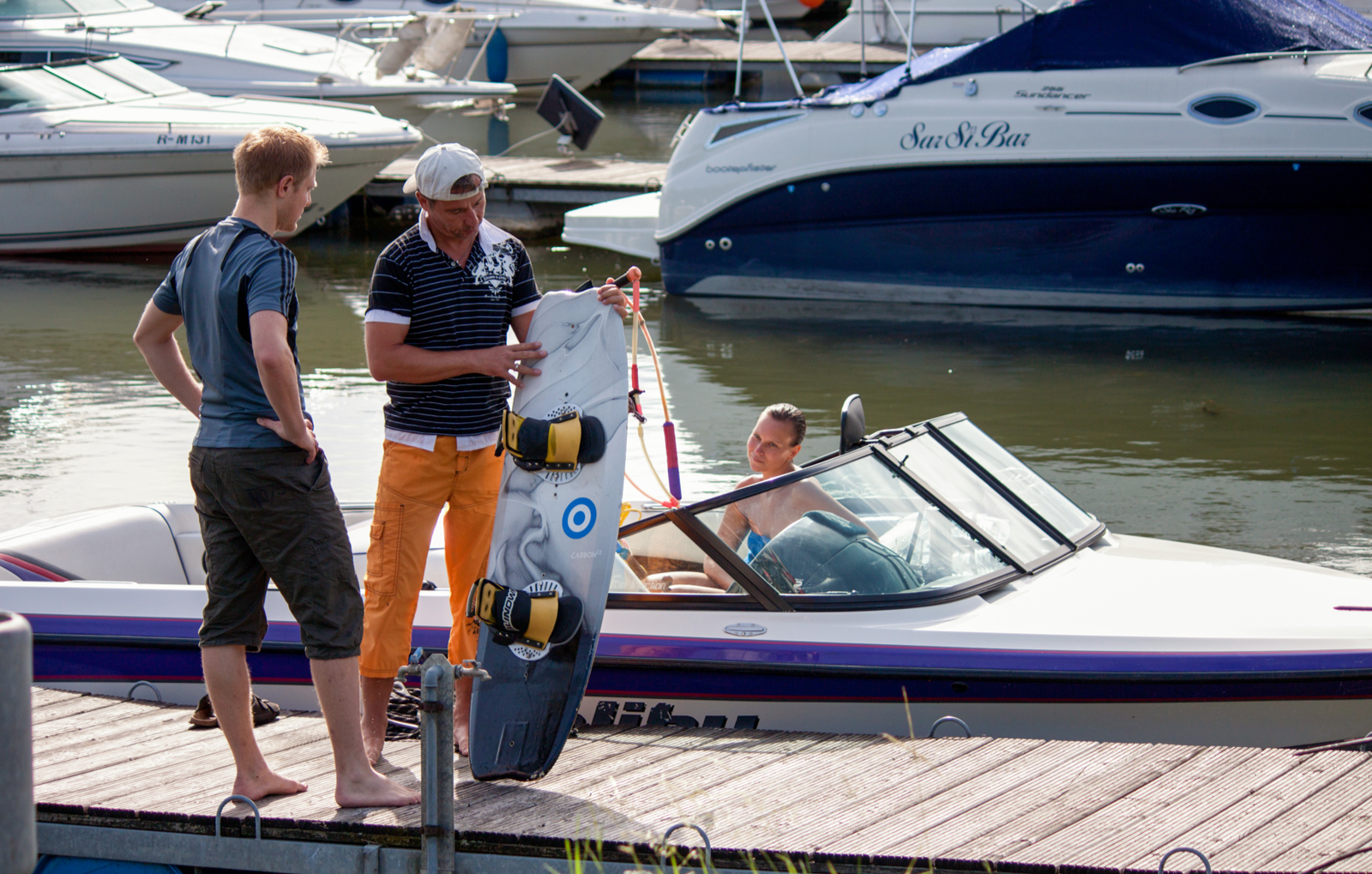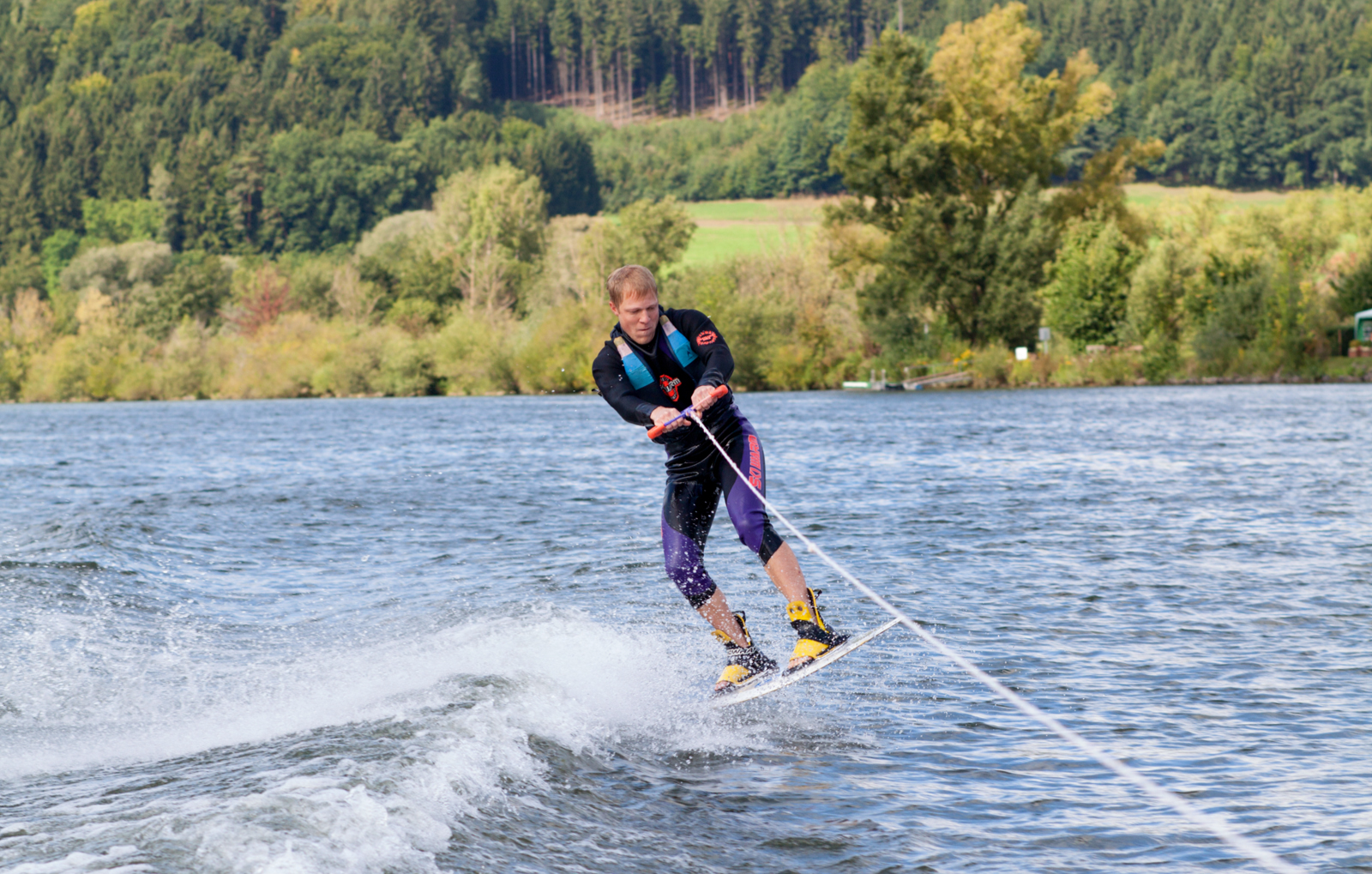 Übers Wasser rasen mit dem Wakeboard! Hast Du Lust? Dann komm zum Wakeboarden nach Poikam.