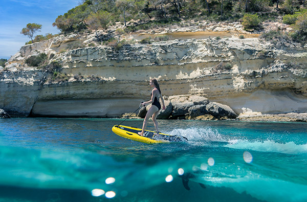 Ein Jetboard ist eine Art elektronisches Surfboard, dessen Geschwindigkeit mit Hilfe einer Handfernbedienung geregelt wird. Die Richtung steuerst Du dabei mit Gewichtsverlagerung. Wie das funktioniert, lernst Du beim Surfkurs in Warnemünde. Hier steht Dir ein erfahrener Mentor zur Seite. Im Nu hast Du den Dreh raus und driftest übers Wasser. Ein echtes Erlebnis der Extraklasse. Die Akkulaufzeit Deines Boards beträgt dabei 40 Minuten. Genug Zeit, um ordentlich Gas zu geben!