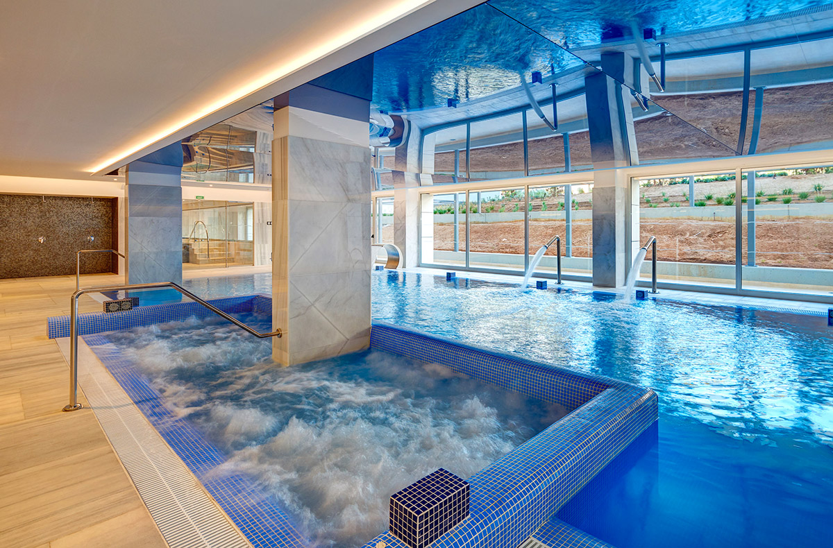 Ihr betretet das 4-Sterne Gran Playa De Palma Hotel, welches sich auf der bekannten Straße Mallorcas, der S´Arenal befindet. Das moderne Foyer sieht sehr einladend aus und lässt Euch direkt wohlfühlen. Ihr begebt Euch gemeinsam zum Spa-Bereich, wo Ihr auf eine moderne Entspannungszone trefft. Eure Sorgen verfliegen und Ihr fangt an Euch richtig wohlzufühlen.