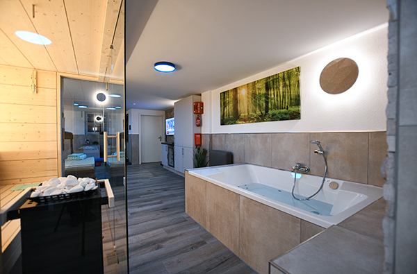 Euch erwartet ein schickes Wohlfühl-Refugium auf 48 m², das eine Wellnessoase mit einer vielfältigen Fitness-Ecke verbindet. Gestaltet den Day Spa in Spalt, wie Ihr möchtet! Ihr könnt dank einer LED-Farbstimmungsbeleuchtung individuell das Licht einstellen und Eure Lieblingsmusik anmachen. Eine traumhafte Atmosphäre zum Ausruhen.