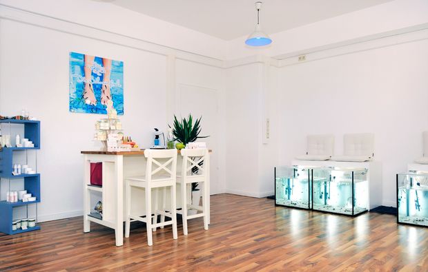 Um das herrlich angenehme Gefühl der weichen Füße auch noch länger genießen zu können, erhältst Du zum Schluss noch eine spezielle Abschlusspflege zum Selbsteincremen. Auf diese Weise werden die Füße gleich noch ein wenig geschmeidiger und fühlen sich noch viel besser an. Wenn auch Deine Füße ein wenig Pflege nötig haben und Du endlich auch mal wieder einen entspannten Tag genießen möchtest, dann solltest Du Dir dieses Erlebnis auf gar keinen Fall entgehen lassen. Also komm schon bald zur Fisch Pediküre nach Bergisch Gladbach!