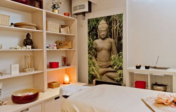 Süße Düfte und ein Welcome-Drink empfangen Sie in Augsburg und sanfte Musik beruhigt Ihre Sinne. Sie sind der Mittelpunkt einer Hot Chocolate Massage, die Köstliches und Anregendes miteinander verbindet. Die wertvollen Substanzen wirken festigend, straffend und die Haut strahlt in einem jugendlich-frischen Teint. Ein Abschieds-Drink und ein Abschiedsgeschenk schließen die Behandlung ab.