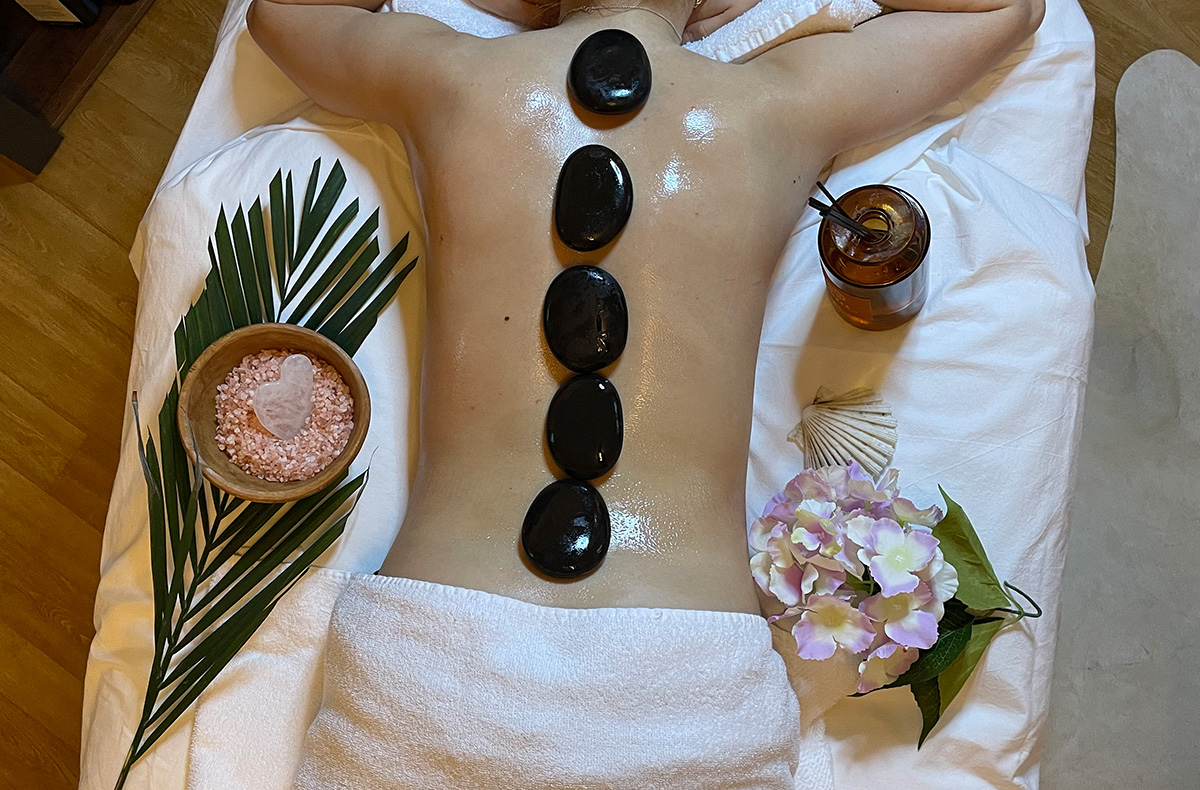 • Verwendung von Basalt- und Edelsteinen und warmen Öl