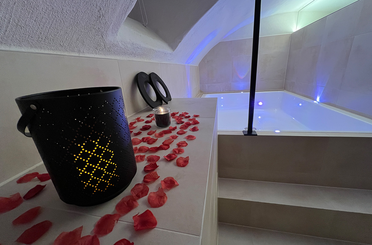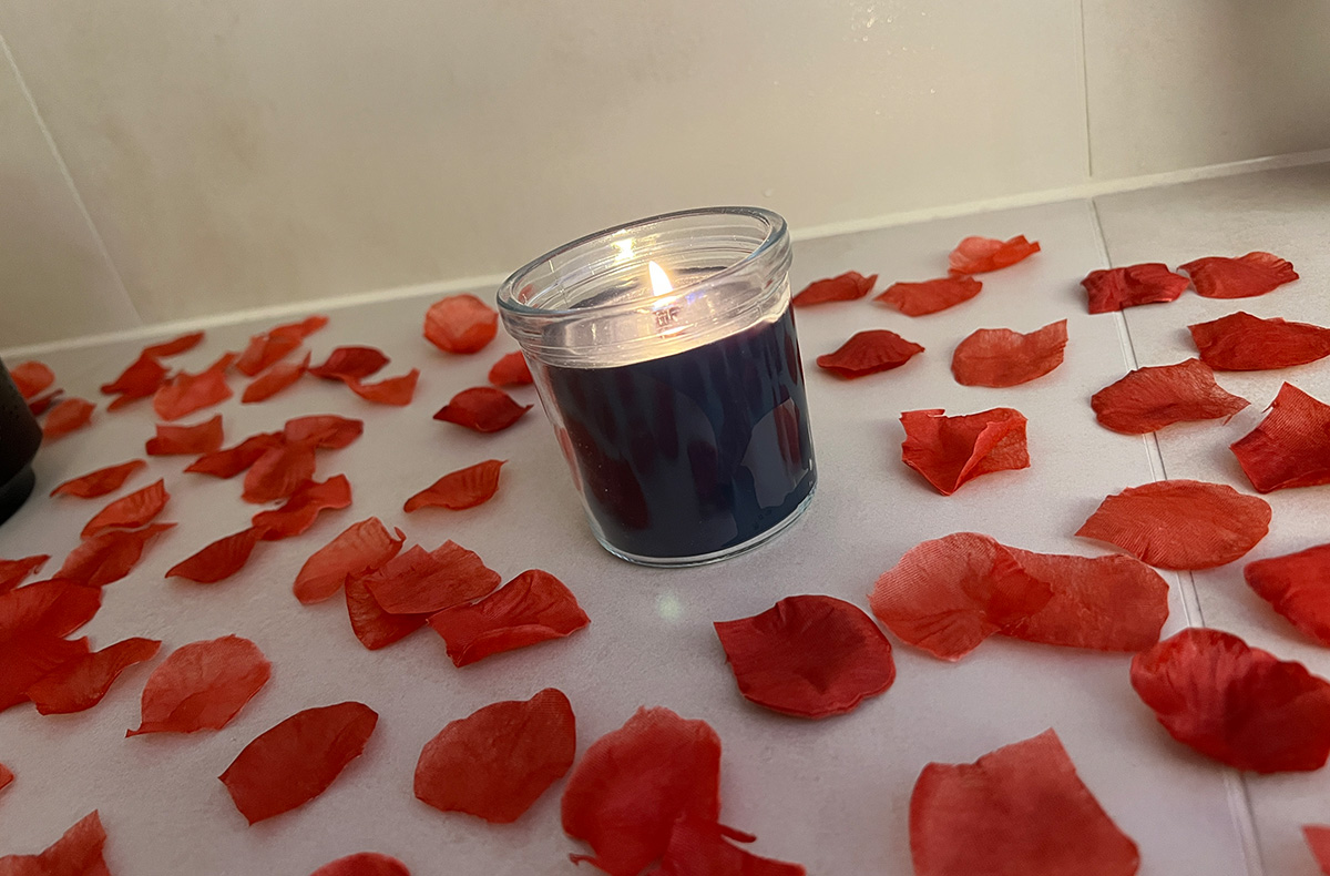 Romantische Dekoration im privaten Float-Bereich inkl. hochwertiger Rose vom Floristen zum Mitnehmen