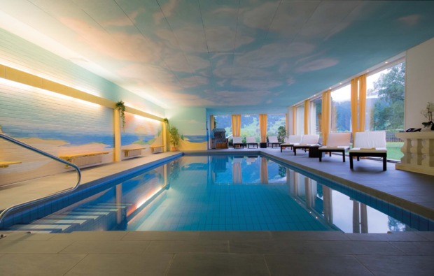 Schon die Anreise ins Romantik Hotel Schweizerhof in Grindelwald im Kanton Bern ist ein wahrer Traum. Das Hotel, in dem Ihr Euren Wellnesstag verbringt, liegt inmitten schöner Natur und bietet Euch einen wunderbaren Blick auf die malerische Bergkulisse. Auch der gemütliche Wellness-Bereich lässt keine Wünsche offen. Im Hallenbad könnt Ihr gemeinsam ein paar Bahnen schwimmen und dabei den sensationellen Ausblick durch die Glasfront geniessen. Möchtet Ihr gerne etwas schwitzen, steht Euch die Saunalandschaft inklusive Dampfbad, Gletschergrotte und Erlebnisdusche zur Verfügung.
