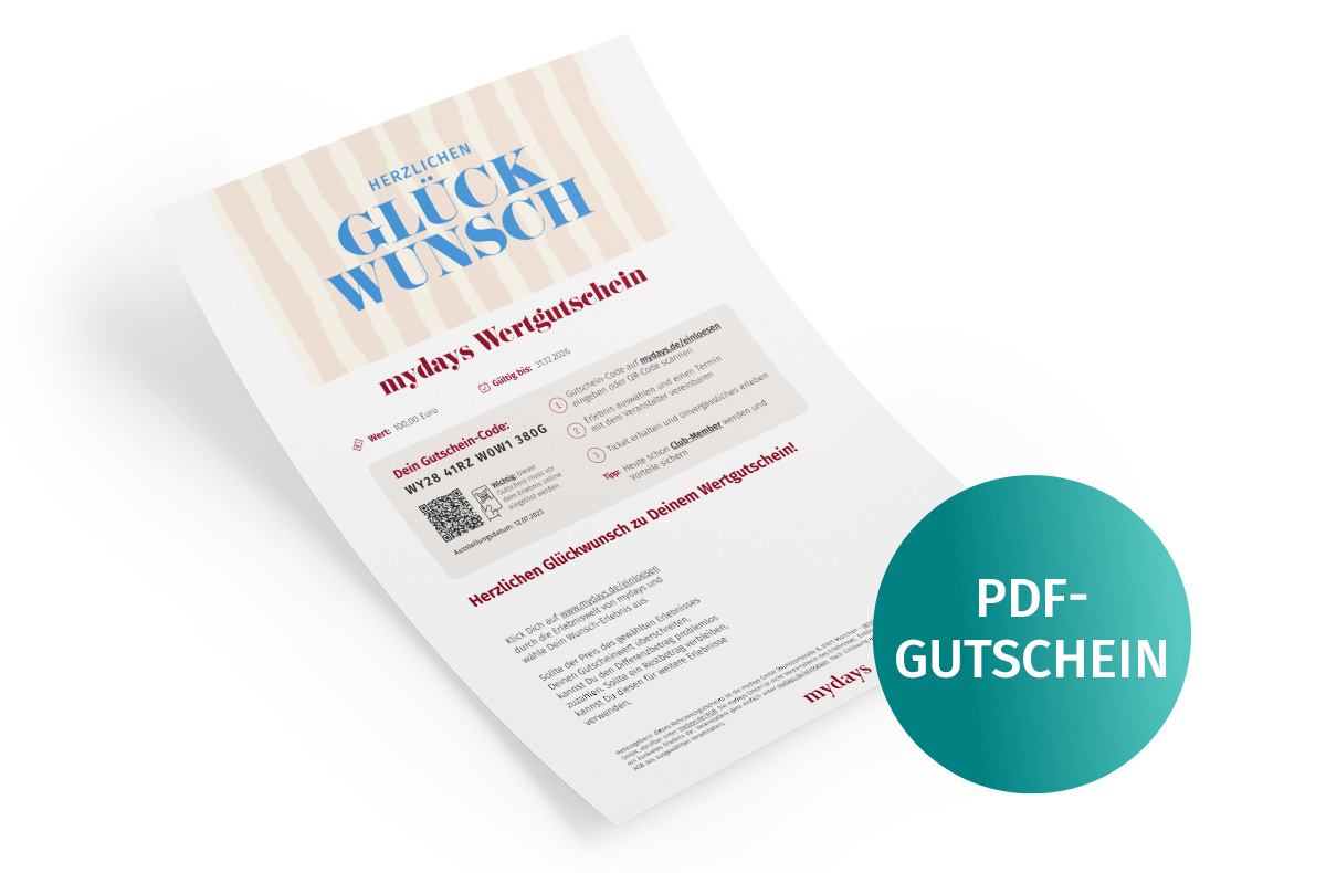 Klicke dich durch die Erlebniswelt von mydays bei www.mydays.de/einloesen und wähle dein Lieblingserlebnis aus.